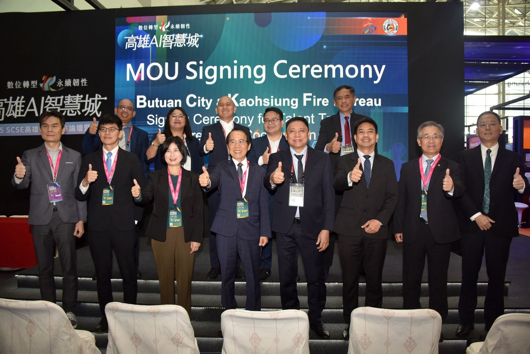 林欽榮指出,菲律賓武端市長Mr.Ronnie已經連續三年參與高雄智慧城市展,對高雄在智慧治理應變與決策的系統整合應用印象深刻,也期待在武端建立一套綜合性防災應變中心,促成了高雄交控中心業者資拓宏宇與武端市簽署MOU,高雄市消防局也與武端市簽署人員培訓交流MOU。此外,高雄智慧醫療業者先進醫資與美國加州新創公司LSIAT、ESG業者可澍科技與新加坡企業今天也進行MOU的簽署。