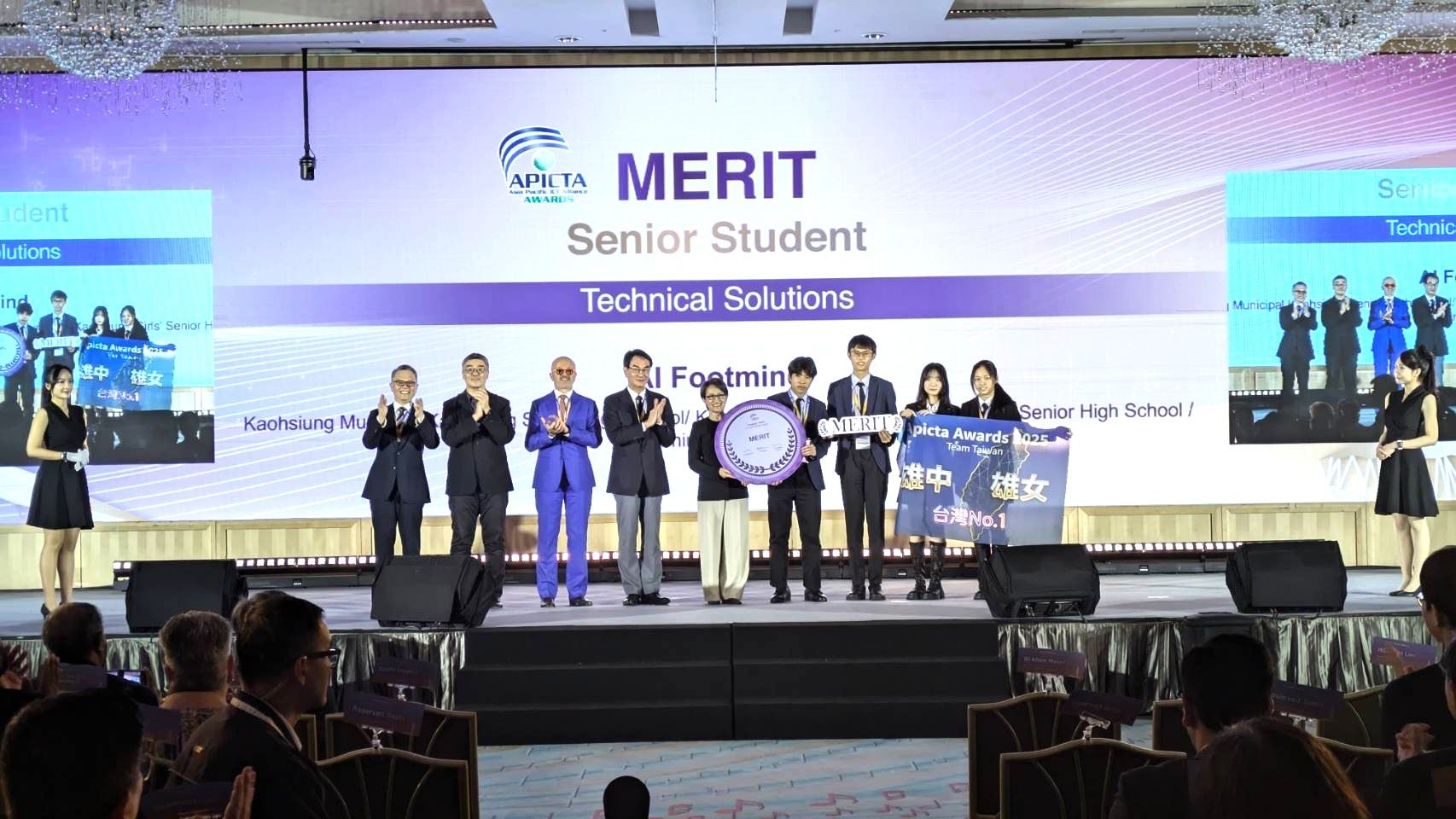 2025年亞太資通訊科技聯盟大賽(下稱APICTA Awards 2025)於高雄舉行頒獎典禮及盛大閉幕,副總統蕭美琴、數位發展部部長林宜敬、高雄市副市長李懷仁及APICTA國際聯盟澳洲籍主席Fulvio Inserra等嘉賓共同到場,為期4天的亞太科技盛事畫下完美句點。台灣代表隊總共獲得10金、8銀、6銅及5優勝,其中高雄團隊展現卓越實力,獲得1金、1銀、1銅及1優勝的佳績。
